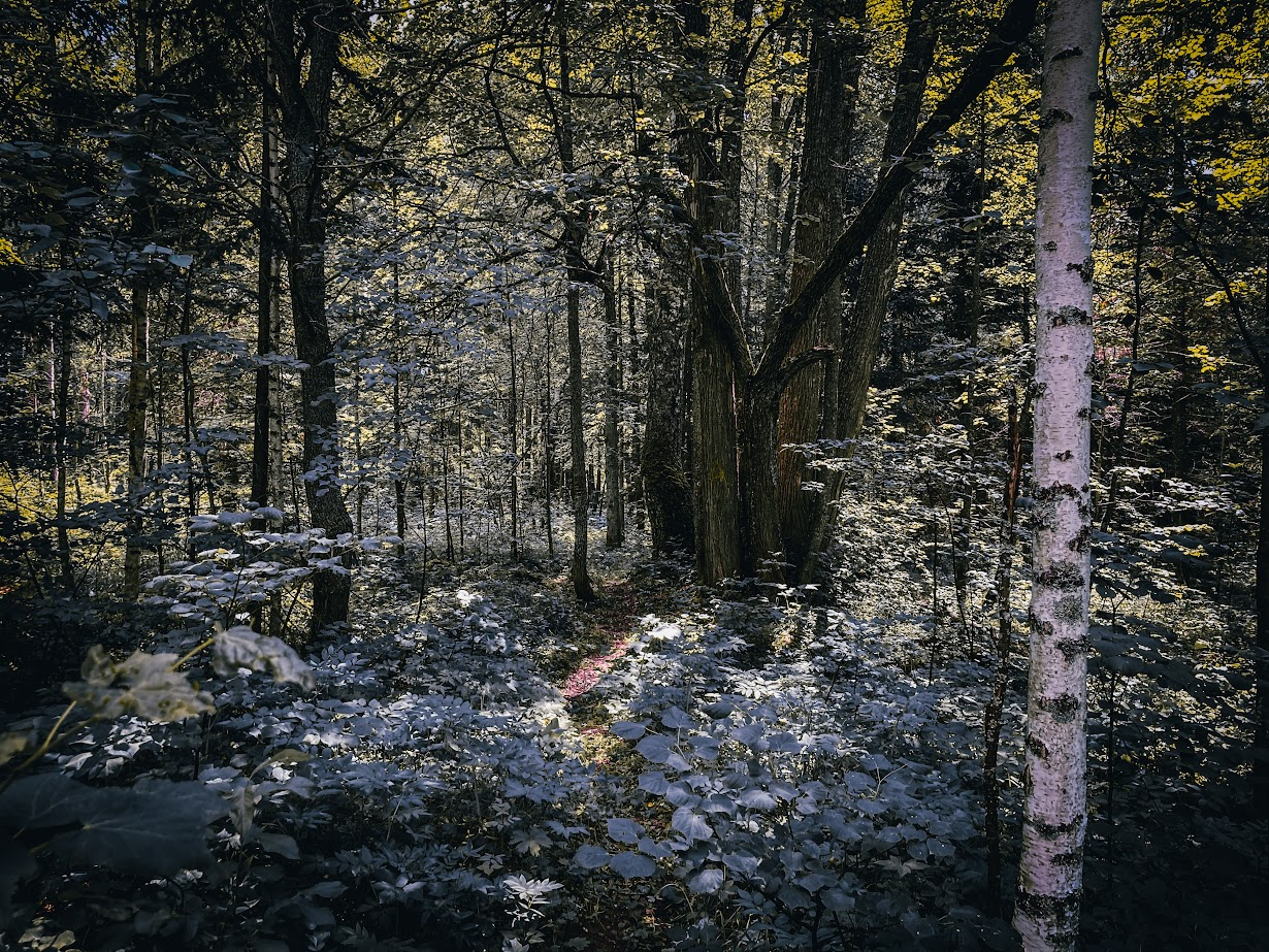 Временами получается смотреть по сторонам, но в местах, где дорога тяжелая, смотришь только под ноги, следуя за тем, кто впереди. Такой механический и медитативный процесс, немного вводящий в транс. Поэтому окружающий лес хочется называть магическим. Кто-то из группы приписывает всю красоту чудесам природы, а кто-то — концентрации аномальной энергии в этих местах.