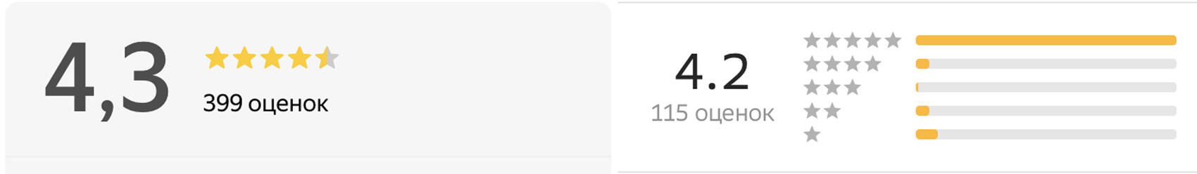 Разрыв между оценками на двух платформах довольно ощутимый. Если на «Яндексе» пользователи оценивают УрГЭУ примерно так же, как и остальные екатеринбургские университеты, то на 2ГИС стоит крайне низкая средняя оценка.