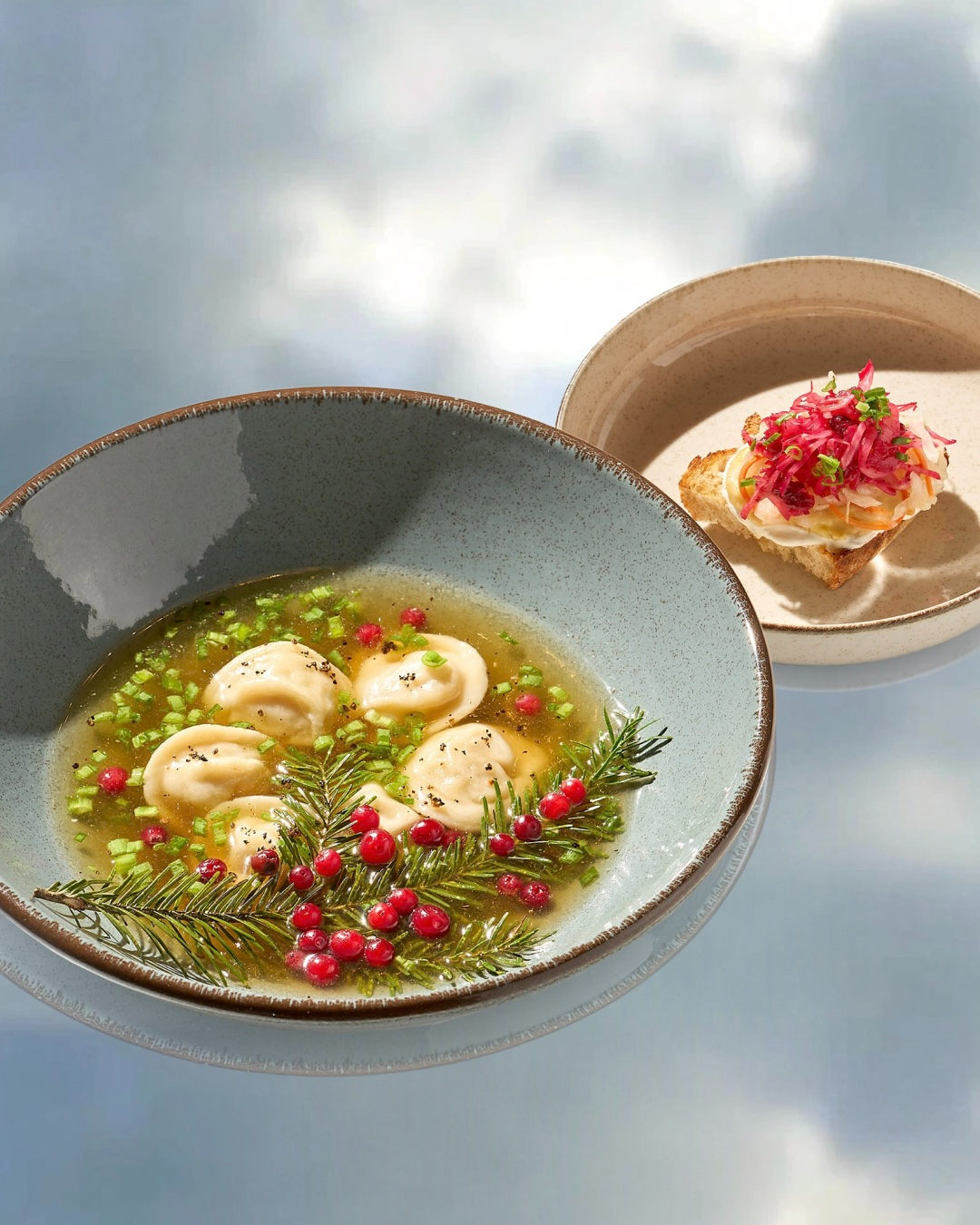 В «Уралочке русалочке» большие тарелки с наваристыми супами обойдутся в 520-550 рублей. Например, бульон с пельменями из оленя, хвоей и ягодами можно заказать за 520 рублей.