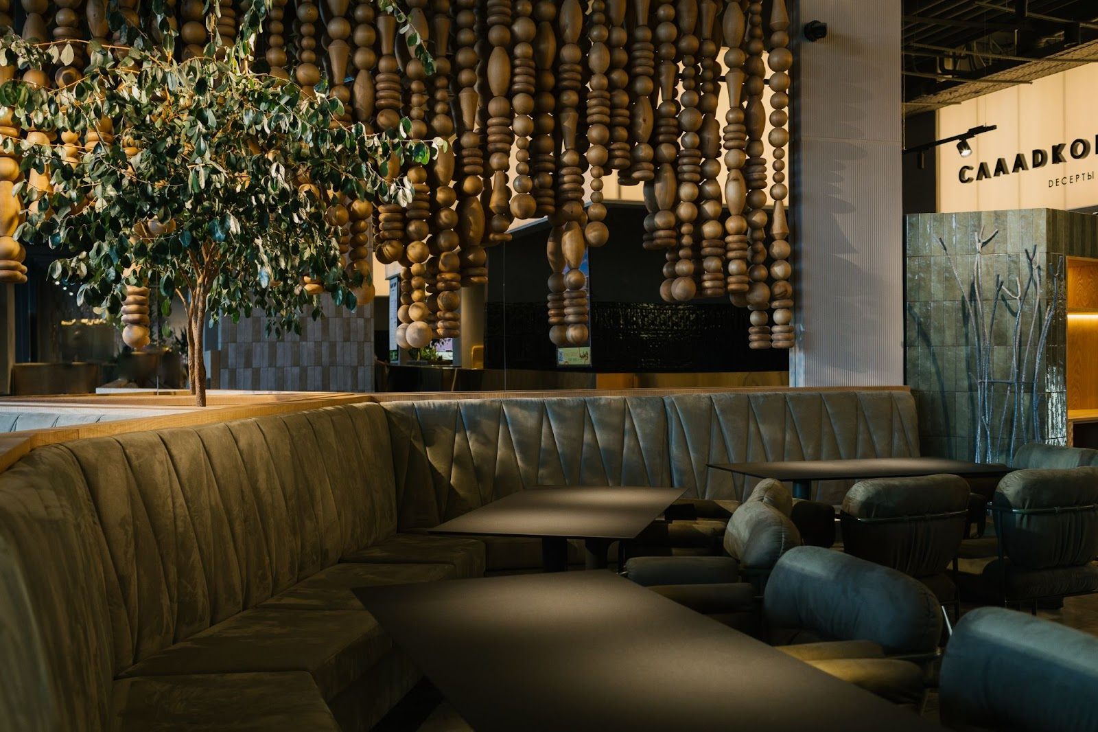 Мы с архитектором Григорием Заславским из архитектурной мастерской RIM.VIII намеренно пошли в другую оптику: у нас на площадке вы увидите помещение, которое не похоже ни на один фудмолл в России: парящие живые сады, мягкая мебель, каменные изделия под стать Уралу, разделение на зоны трафика. Чего стоит только резьба по дереву и прочие элементы декора. Это все ручная работа уральских мастеров, что немаловажно, — рассказывает Анастасия.