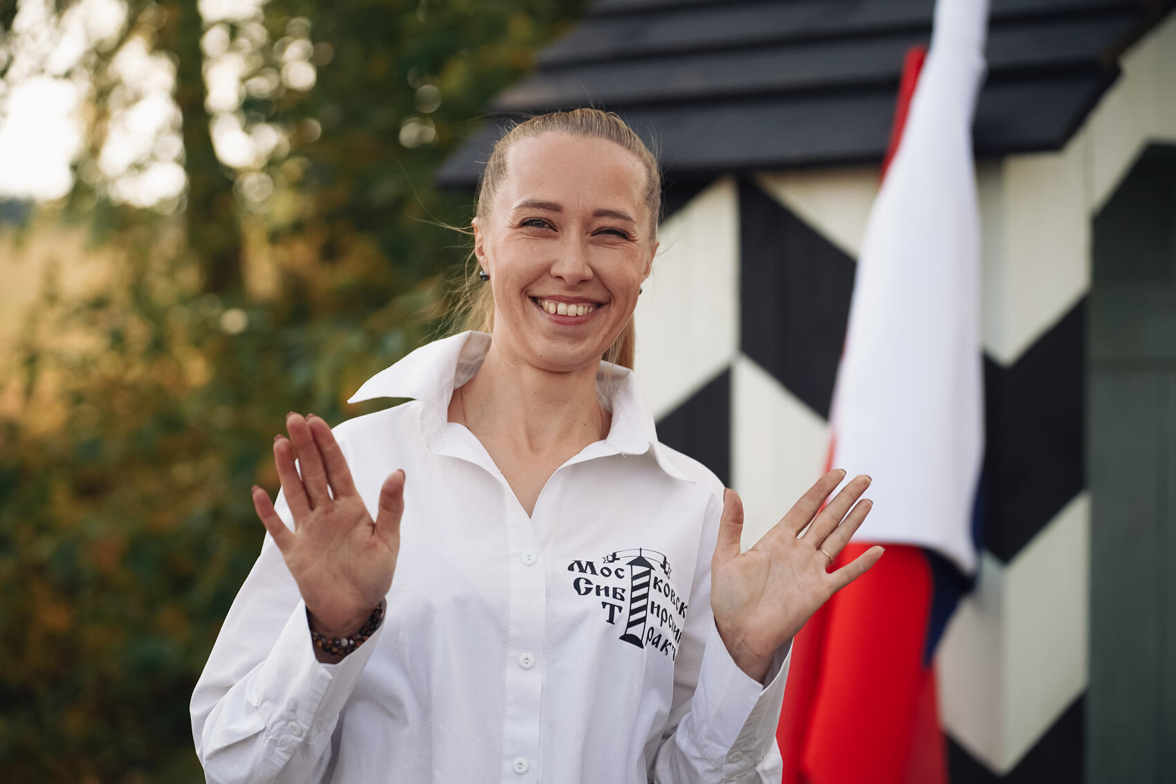 Последней выступила основатель и руководитель проекта «Киргишанская верста» Анастасия Фрикке, улыбчивая женщина средних лет со светлыми волосами, собранными в хвост, одетая в белую футболку с логотипом «Московско-Сибирского тракта».