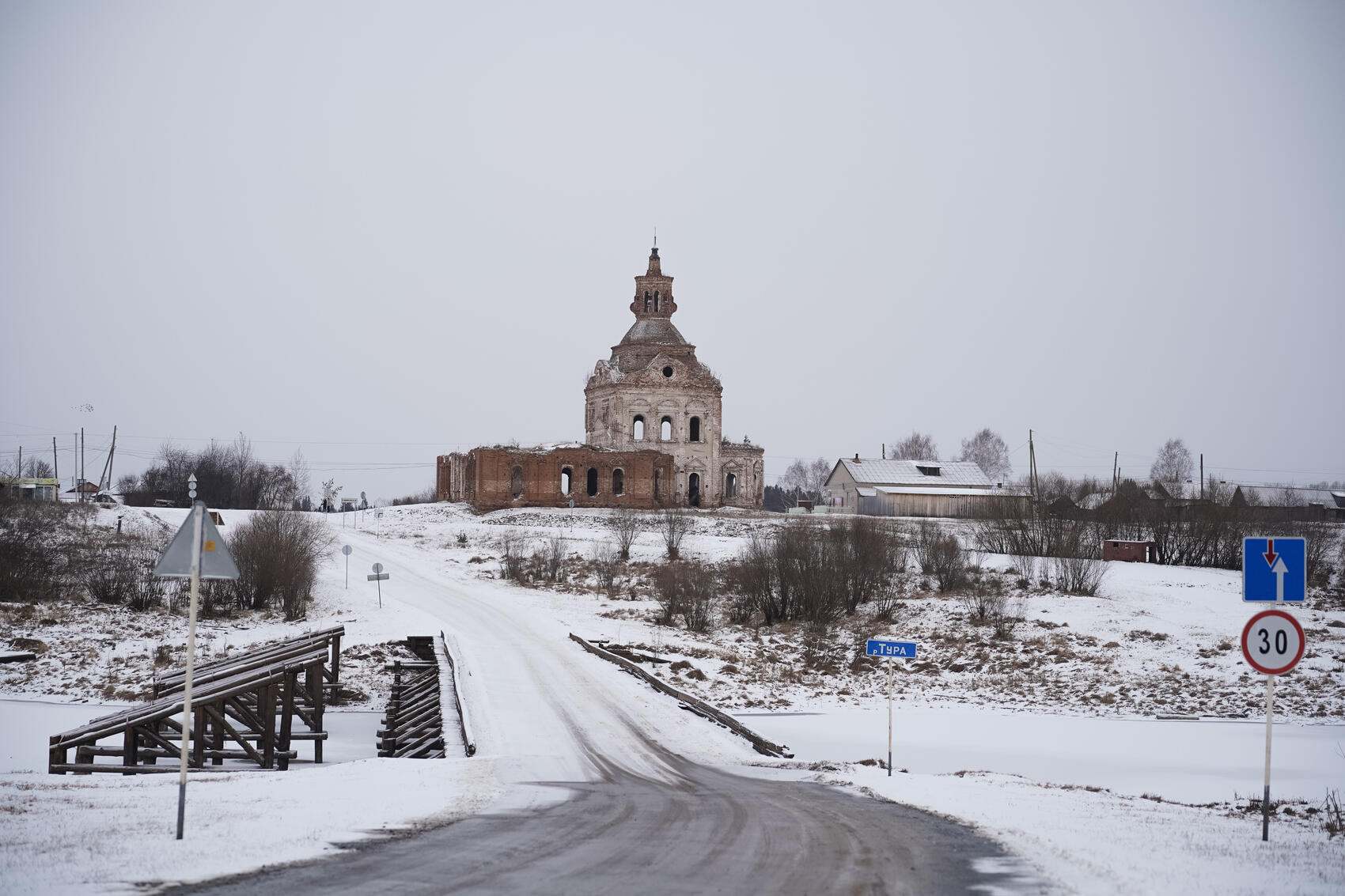 Чтобы попасть в деревню Барбашина, населенный пункт, выигравший конкурс, нужно проехать тридцать километров от Туринской Слободы и пересечь мост через реку Туру. На правом берегу реки стоит паром, который используется во время ежегодных паводков, затапливающих мост.