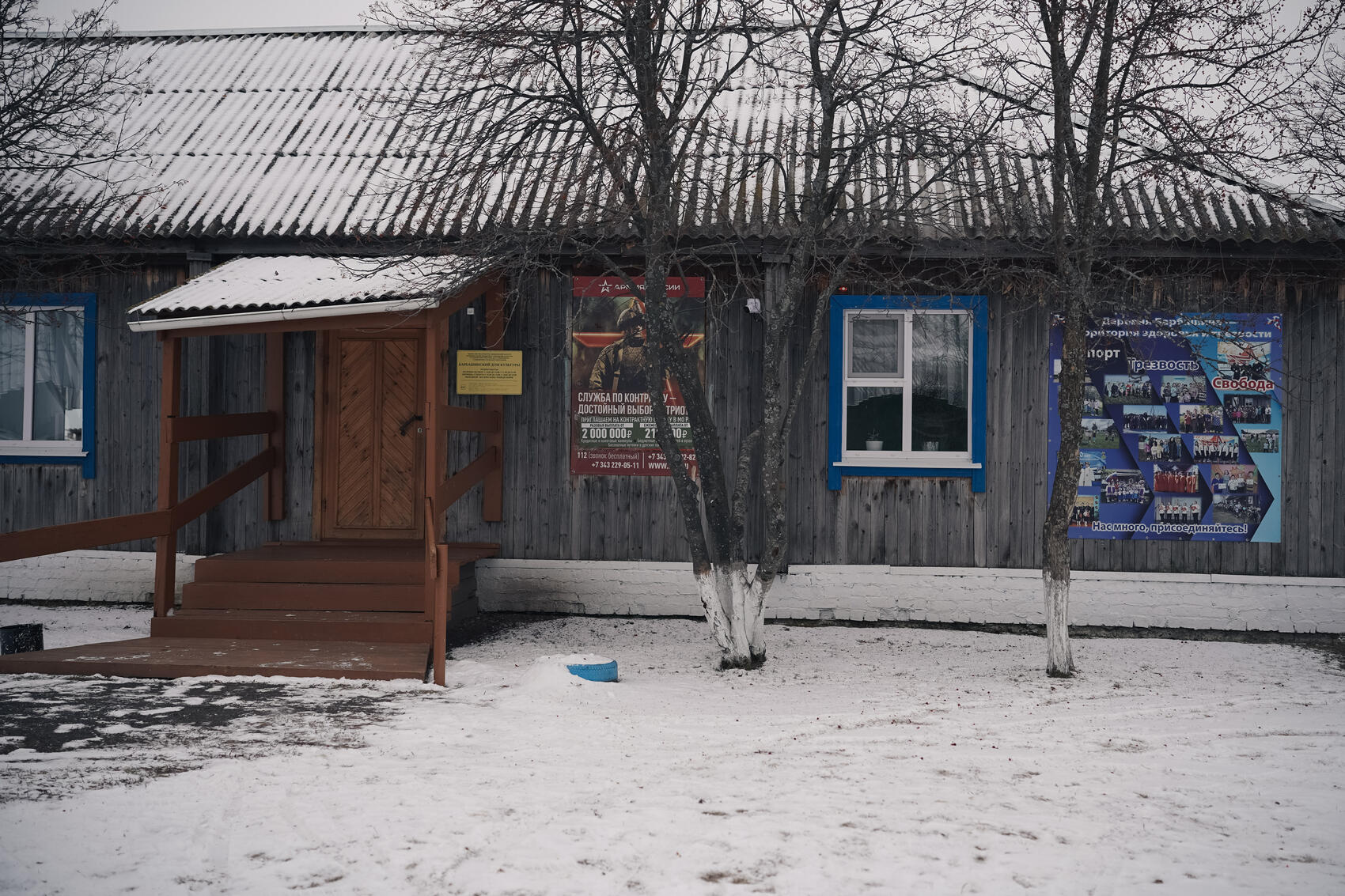 Слободо-Туринский дом культуры наиболее активно участвовал в мероприятиях, которые проводились для конкурса. ДК находится в двухэтажном современном здании, расположенном по соседству с сельской администрацией. В учреждении идет ремонт, а на первом этаже проходит призывная медкомиссия: несколько молодых людей со стопками бумаг в руках сидят на стульях, расставленных вдоль стен. Сразу у входа за рамкой металлоискателя стоят стенды с детскими рисунками, прикрепленные под надписью «Призыву подлежит».