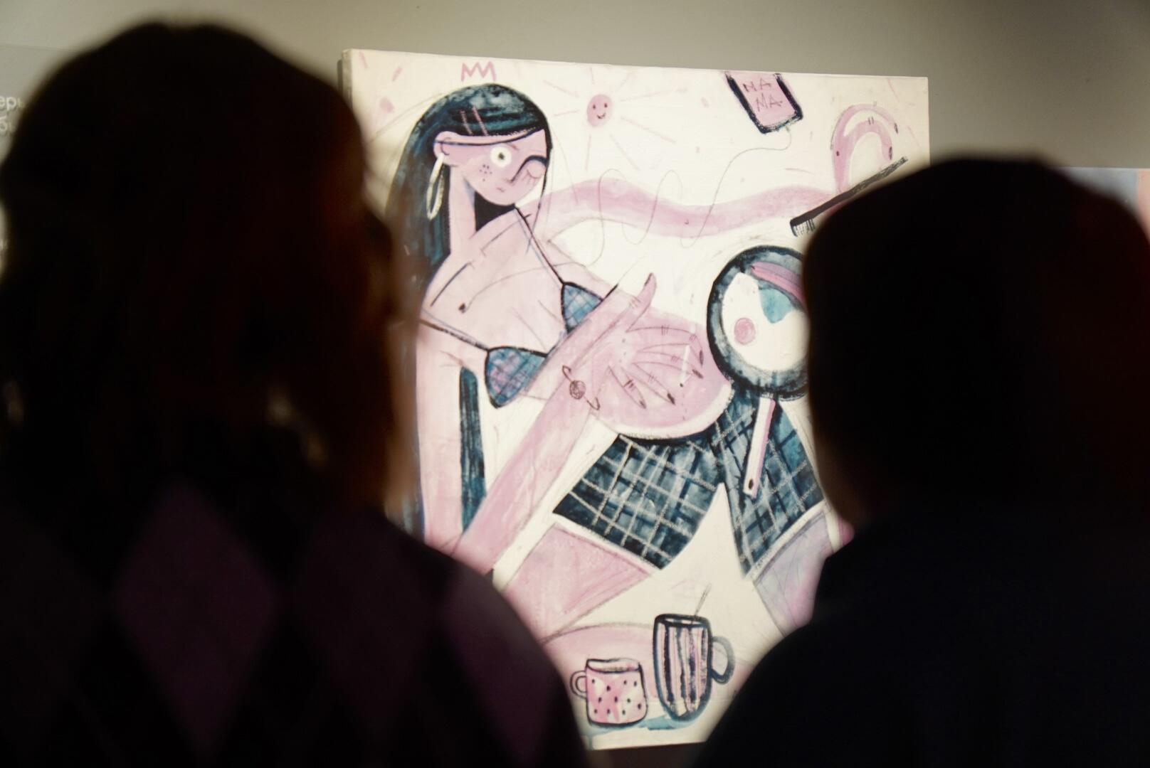 Центральная тема выставки — исследование женской идентичности через материнство, дружбу, детскую непосредственность и взрослую ответственность. Художница создает визуальные истории на грани искренности и утрирования, чтобы показать сложность внутреннего мира.