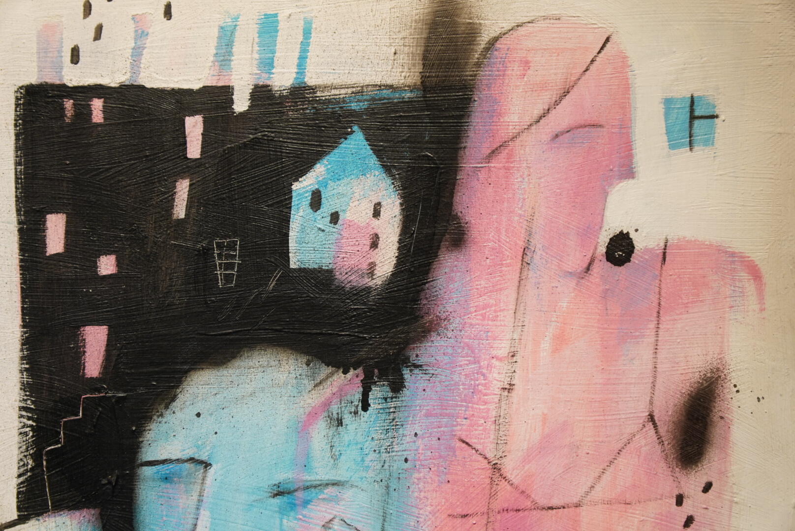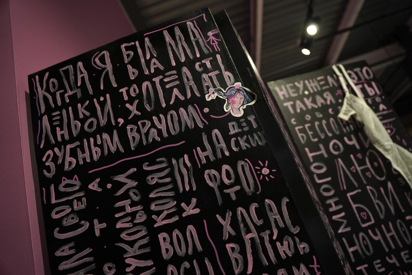 «Во время экспериментов и поисков того самого художественного приема я случайно наткнулась на „акварельный“ прием, с помощью которого любой цвет по-новому раскрывается. Розовый таким образом стал как раз отражением той самой хрупкости, именно когда я увидела его в подтеках, разводах краски», — говорит Татьяна.